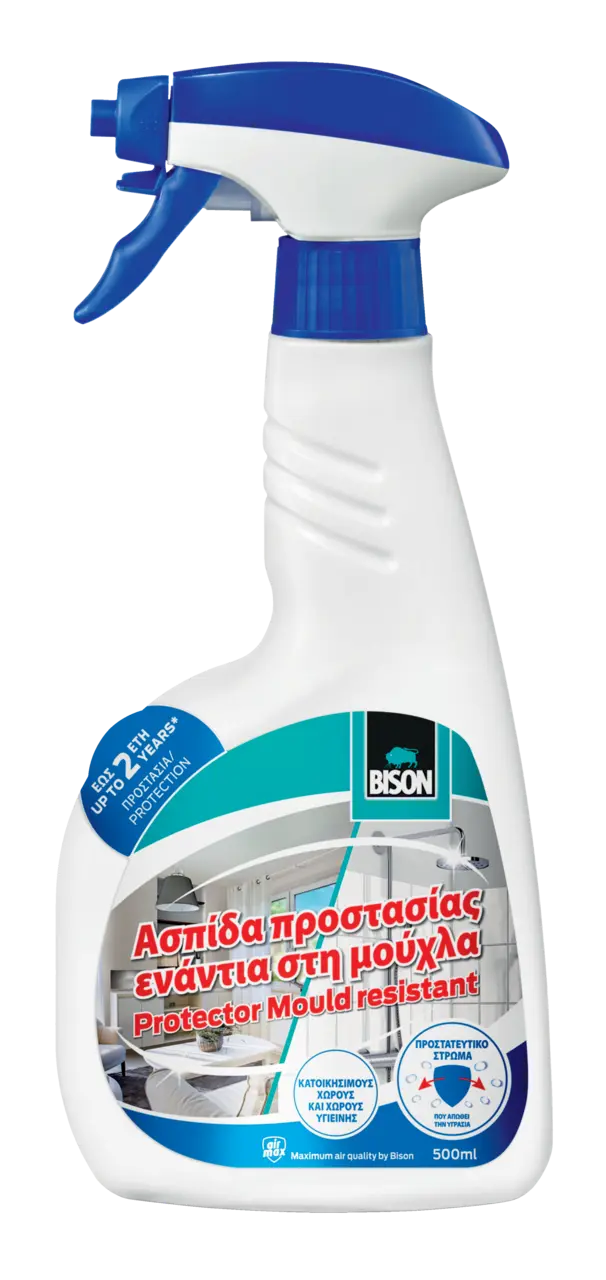 Βεβαιωθέιτε ότι η επιφάνεια που θα ψεκάσετε είναι εντελώς καθαρή, στεγνή και απαλλαγμένη από σκόνη, σκουριά και λίπη. Πρώτα αφαιρέστε όλη την μούχλα (ίχνη) με το Bison Aντιμουχλικό Σπρέυ & Αφρός. Ακολουθήστε την πληροφορίες χρήσης στην σχετική συσκευασία.