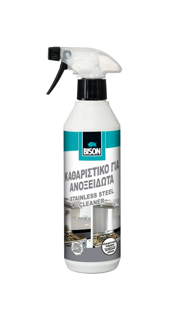 Απολιπάνετε (εφόσον χρειάζεται) τις επιφάνειες που θα καθαριστούν, με το Bison Αφαιρεί τα λίπη για Κουζίνες. Περιστρέψτε την κεφαλή του σπρέι κατά ένα τέταρτο στη θέση ΟΝ. Ψεκάστε αδιάλυτο στην προς καθαρισμό επιφάνεια και αφήστε να δράσει για λίγα λεπτά. Απλώστε το στην επιφάνεια με πανί (χωρίς χνούδι) ή με χαρτί κουζίνας. Στεγνώστε την επιφάνεια με πανί (χωρίς χνούδι) ή με χαρτί κουζίνας. Επαναλάβετε την διαδικασία εάν είναι απαραίτητο. Περιστρέψτε την κεφαλή του σπρέι στη θέση OFF μετά την χρήση. Καθαρισμός εξοπλισμού κουζίνας: ψεκάστε σε υγρό πανί (χωρίς χνούδι), τρίψτε το στις επιφάνειες που θα καθαριστούν (θυμηθείτε να αφαιρέσετε την πρίζα από την παροχή ρεύματος) και στη συνέχεια στεγνώστε το.