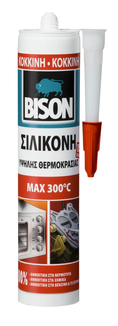 Διοχετεύστε στεγανοποιητικό ομοιόμορφα και αργά μέσα στον αρμό. Εξομαλύνετε αμέσως με το δάχτυλο και σαπουνόνερο. Για την κόλληση, ενώστε τα μέρη εντός 5 λεπτών. Μετά από περ. 5 λεπτά, θα δημιουργηθεί κρούστα. Το BISON High Temp επιτυγχάνει στην υψηλή του θερμική αντοχή, αφού έχει σκληρυνθεί πλήρως. Η σκλήρυνση μπορεί να επιταχυνθεί, θερμαίνοντας το στεγανοποιητικό στους 150°C, το μέγιστο.