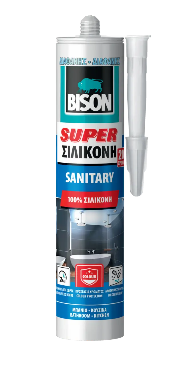 Ιδανική για σφράγιση σε είδη υγιεινής και κεραμικές εφαρμογές όπως αρμούς σε επιδαπέδια ή επιτοίχια πλακάκια, μπάνια, ντουσιέρες, νεροχύτες και πάγκου κουζίνας. Ιδανική για ακρυλικές μπανιέρες, συνθετικές βάσεις ντουσιέρας και τοίχους ντουσιέρας. Κολλάει σε γυαλί, κεραμικά, φυσική και συνθετική πέτρα, σμάλτο, μέταλλο, ξύλο και διάφορα συνθετικά. Δεν κολλά σε επιφάνειες από άσφαλτο, πολυαιθυλένιο, πολυπροπυλένιο και PTFE. Ακατάλληλη για ενυδρεία - για τέτοιες δουλειές προτείνουμε την BISON Silicone Sealant Glass Διάφανη.