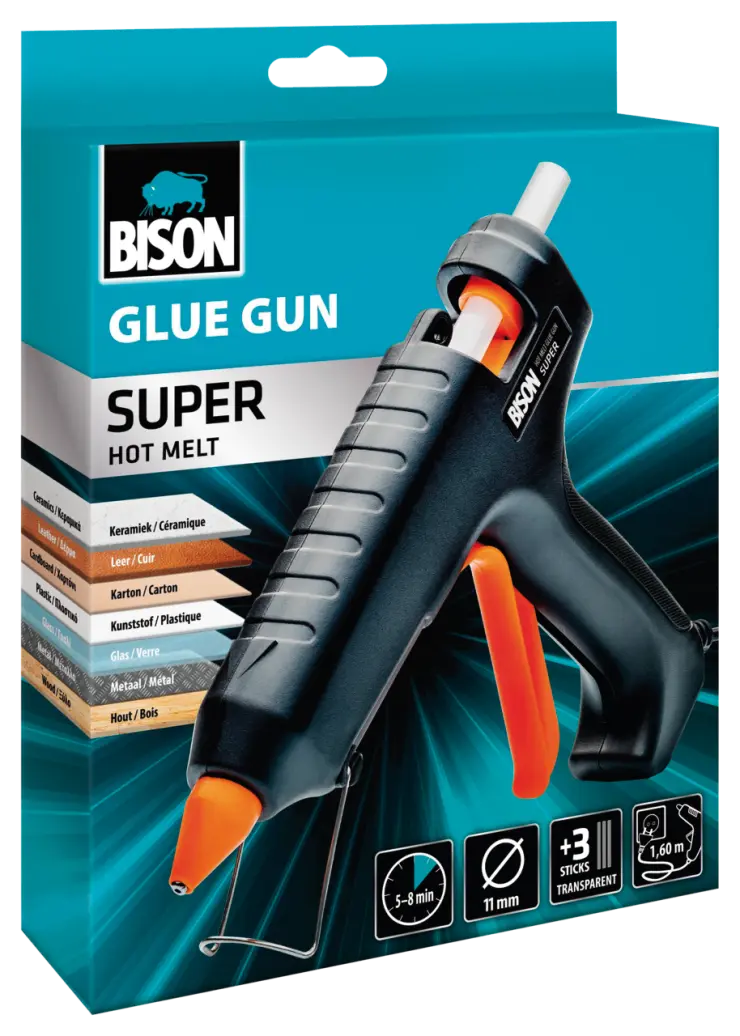 Glues many porous and non porous materials in seconds such as wood, metal, stone, glass, tiles, ceramic, leather, textiles and many plastics. With a high meltig capacity and is suited for DIY and all household repairs. Glues almost all materials quickly, neatly, permanently and reliably. Ideal for fixing, repairing, isolating and sealing. For example carpets, shoe soles and heels, mounting laths, skirting boards or glueing a loose tile. Multifunctional.