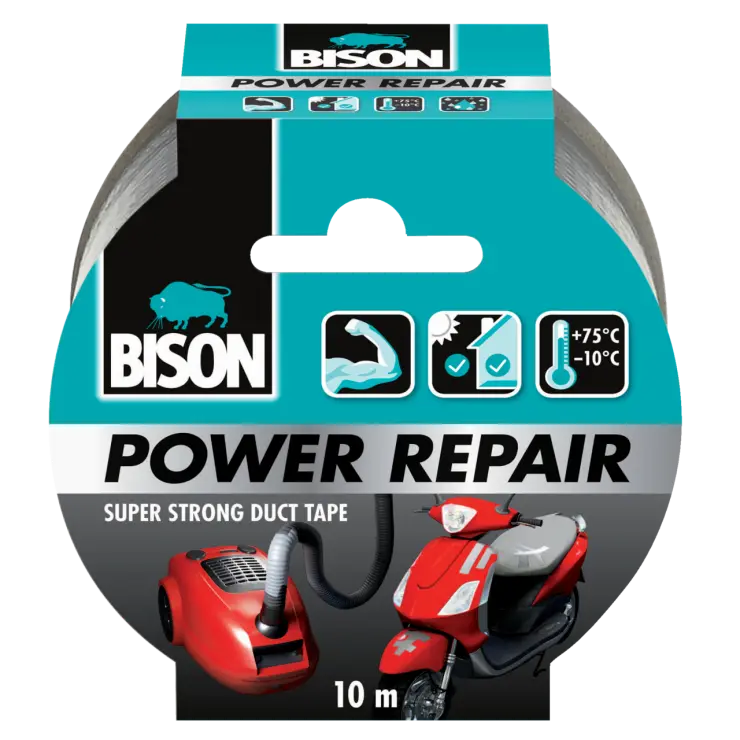 Suitable for repairing, strengthening, sealing, connecting and protecting. Super strong duct tape for a universal use. For indoor and outdoor applications. It adheres on many synthetic materials (e.g. PVC, ABS), glass, metal, textile, wood, stone.