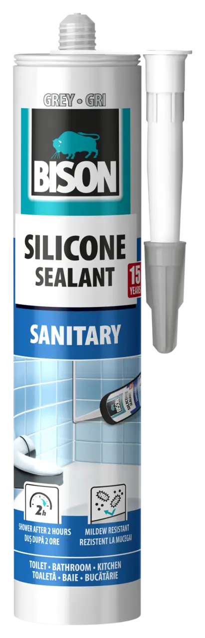 For the sealing of seams, joints and crevices between wall, bath, shower cubicle, bathroom sink and kitchen counter in the sanitary areas like bathrooms, toilet and kitchens. Specifically for sealings in sanitary and ceramic applications, such as joints between wall and floor tiles, bath, shower cubicle, bathroom sink, kitchen counter, sink and tile walls. Also ideal for acrylic bathtubs, plastic shower bases and shower walls. Adheres to clear glass, ceramics, glazed tiles, enamel, metal, wood and various synthetics. Does not bond to bitumen, polyethylene, polypropylene and PTFE. Not suitable for aquariums, for this we recommend BISON Silicone Sealant Glass Transparent.
