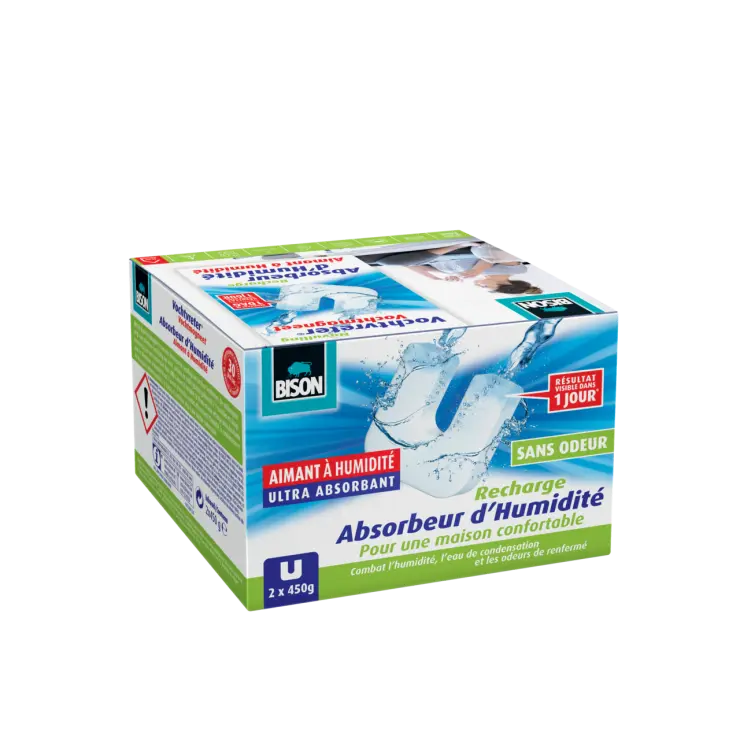 Lutte contre la condensation, l’humidité et les odeurs de renfermé. L’Absorbeur d’Humidité est inodore, insonore, il ne consomme pas d’énergie et est facile à recharger. L’Absorbeur d’Humidité réduit les taux d’humidité relative de l’air trop élevés dans tous les espaces fermés peu ou non ventilés. Idéal pour les caves, les garages, les greniers, les placards, les caravanes, les bateaux, les abris de jardin, etc.