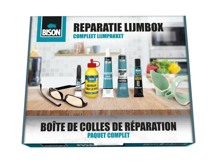 Toujours à la recherche de la bonne colle? Avec cette très pratique boîte de colles, vous avez, pour quasi toutes les réparations, la bonne colle chez vous . La boîte de colles de réparation Bison contient: