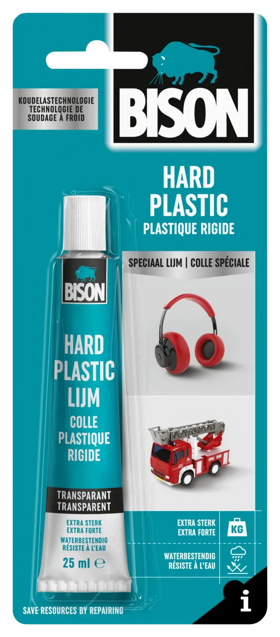 Colle des matières synthétiques utilisées dans le ménage, comme l'ABS, le verre acrylique (Perspex, plexiglas®), le polycarbonate (Lexan®) et le PVC rigide. Convient en particulier à la réparation d'appareils ménagers en plastique, comme: téléphone (mobile), cafetière électrique, appareils audio, bouilloire électrique, télécommande, ordinateur, imprimante, clavier. Convient également à l'encollage de conduites électriques en PVC, et des parties plastiques de phares de voiture et de vélo.