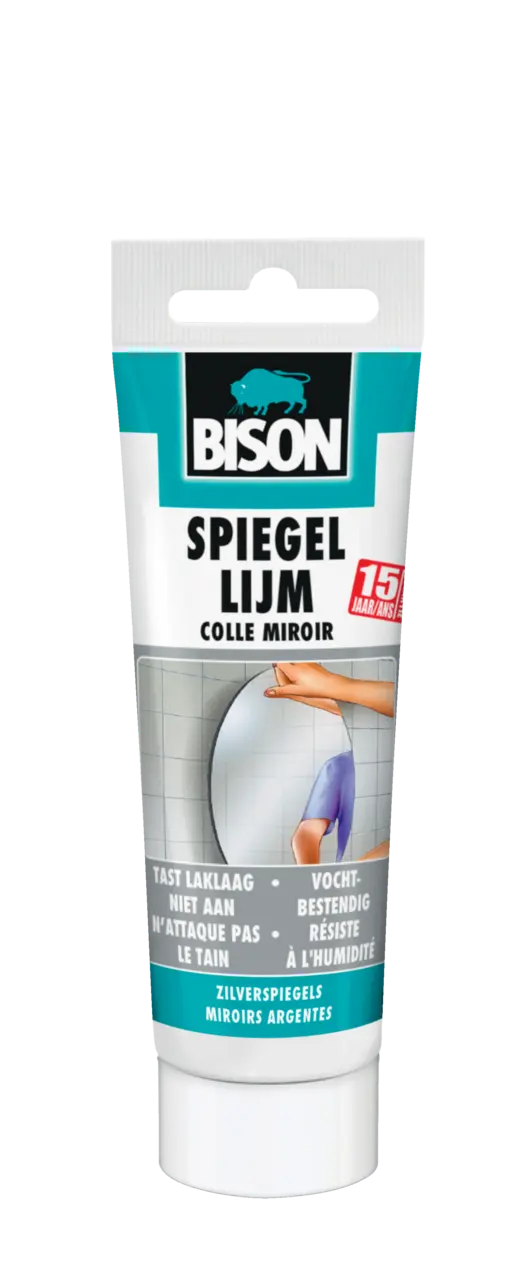 Visser la canule en plastique sur la cartouche et la couper en biseau à un diamètre d'env. 5 mm. Placer la cartouche dans un pistolet à mastic. Appliquer la Colle Miroir en lignes verticales (humidité ne peut couler à l'arrière du miroir en cas de lignes horizontales) à 20 cm les unes des autres au dos du miroir intact. Fixer le miroir dans les 10 minutes, puis bien appuyer. L’espace derrière le miroir doit être et rester bien ventilé. Soutenir les grands miroirs pendant 24 heures au moyen d’une latte ou de ruban adhésif, jusqu’au durcissement complet de la colle.