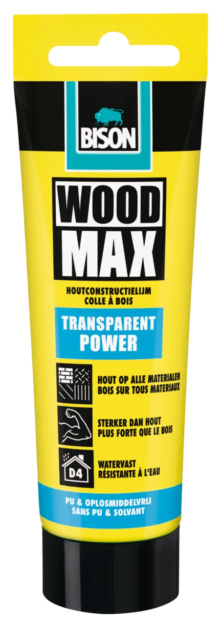 Pour l'encollage (de surface) transparent et résistant à l'eau (D4) de presque toutes les espèces de bois entre elles et sur nombreux de matériaux de construction, tels que plâtre, pierre (de taille), béton (cellulaire), métal, mousse rigide et diverses matières synthétiques. Convient pour constructions en bois non portantes au moyen de différents raccords de bois, tels que des assemblages à entures multiples, queues d'aronde, assemblages à tenon et à mortaise, poinçons et alaises. Convient pour des applications à l'intérieur et l'extérieur telles que la menuiserie de façade et des panneaux sandwich. Convient particulièrement pour des raccords moins bien ajustés (p. ex. bois non raboté). Idéale pour des applications verticales et horizontales. D4: Intérieur en contact de l'eau de ruissellement ou de condensation importante et fréquente. Extérieur exposé aux intempéries à condition qu'un revêtement de surface adéquat soit appliqué sur l'ouvrage collé.