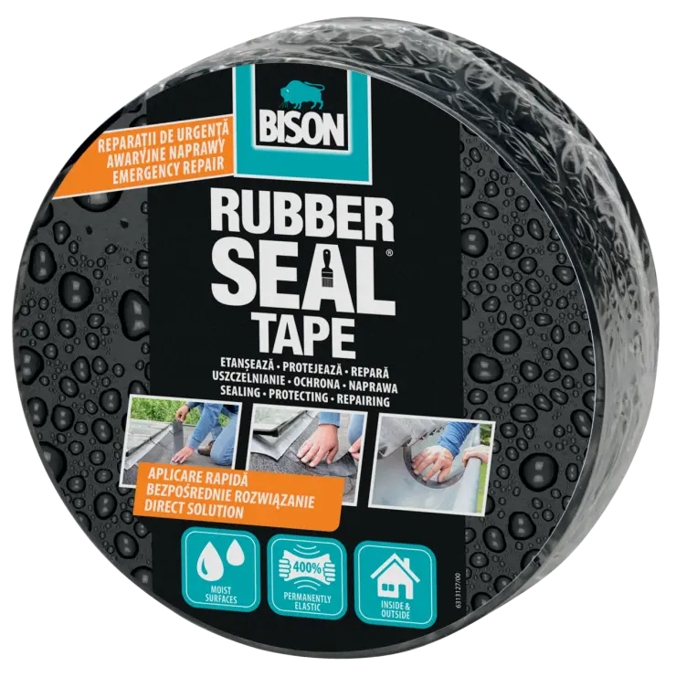 Osigurajte da su površine što suše i čiste, uklonite prašinu ili masnoću. Nanesite preklapajući sloj ako je površina šira od trake. Privremeni i hitni popravci: traka se također može koristiti samostalno. Trajni popravci: mogu se koristiti u kombinaciji s BISON Rubber Seal® tekućom gumom. BISON Rubber Seal® tekuća guma može se nanijeti izravno čim to okolnosti i vremenski uvjeti dopuštaju. Minimalna debljina sloja: 2 mm nakon sušenja kada se koristi u kombinaciji s BISON Rubber Seal® tekućom gumom..