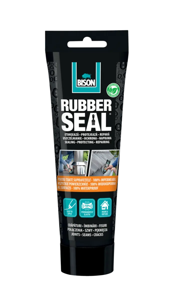 Prije upotrebe dobro promiješajte dok ne dobijete homogenu boju. Površine moraju biti suhe, čiste i bez prašine i masnoća. Po potrebi ih ispjeskarite. Nanesite kistom, valjkom ili gumenim brisačem (min. 2 sloja) uz vrijeme čekanja od približno 10 min između slojeva. Savjet: upotrijebite BISON Rubber Seal® tekstilnu traku u kombinaciji s BISON Rubber Seal® tekućom gumom da biste bandažirali napuknuća, pukotine i spojeve i olakšali stvaranje debljine sloja. Nanesite tekstilnu traku za tekuću gumu odmah nakon nanošenja prvog sloja, dobro pritisnite i odmah prekrijte drugim slojem. Bison Rubber Seal® tekuća guma suha je na prašinu nakon približno 3 sata, može se izložiti vodi (kiši) nakon 12 sati i potpuno se stvrdnjava nakon 48 sati, ovisno o nanesenoj količini i okolnim uvjetima. Minimalna debljina sloja: 2 mm. Upotreba: 1,5 – 2,5 L/m2