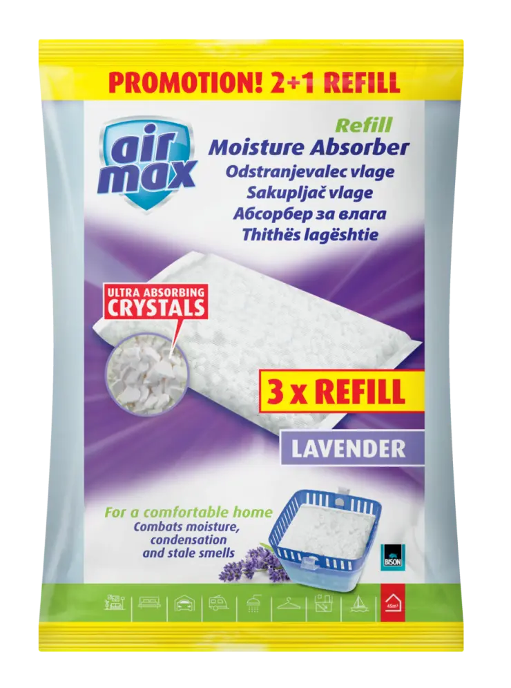 450 g djeluje otprilike 3 mjeseca u prostoriji veličine od oko 45 m³ i upija otprilike 0,5 litara vode, ovisno o temperaturi, vlažnosti zraka i veličini prostorije.