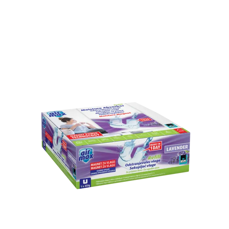 Suzbija kondenzaciju, ustajale mirise i miris vlage. Sakupljač vlage je bez mirisa, nečujan, ne koristi energiju i jednostavno se puni. Sakupljač vlage smanjuje previsoku razinu relativne vlažnosti zraka u svim zatvorenim prostorima s malo ili bez ventilacije. Idealan je za podrum, garažu, tavan, ormar, kamp kućicu, brod, šupu itd.