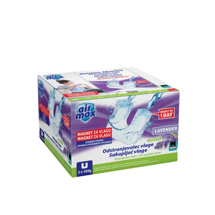450 g djeluje otprilike 3 mjeseca u prostoriji veličine od oko 45 m³ i upija otprilike 0,5 litara vode, ovisno o temperaturi, vlažnosti zraka i veličini prostorije.