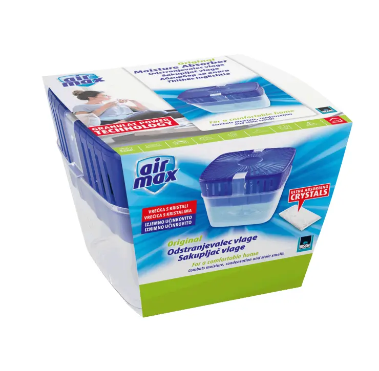 Suzbija kondenzaciju, ustajale mirise i miris vlage. Sakupljač vlage je bez mirisa, nečujan, ne koristi energiju i jednostavno se puni. Sakupljač vlage smanjuje previsoku razinu relativne vlažnosti zraka u svim zatvorenim prostorima s malo ili bez ventilacije. Idealan je za podrum, garažu, tavan, ormar, kamp kućicu, brod, šupu itd.