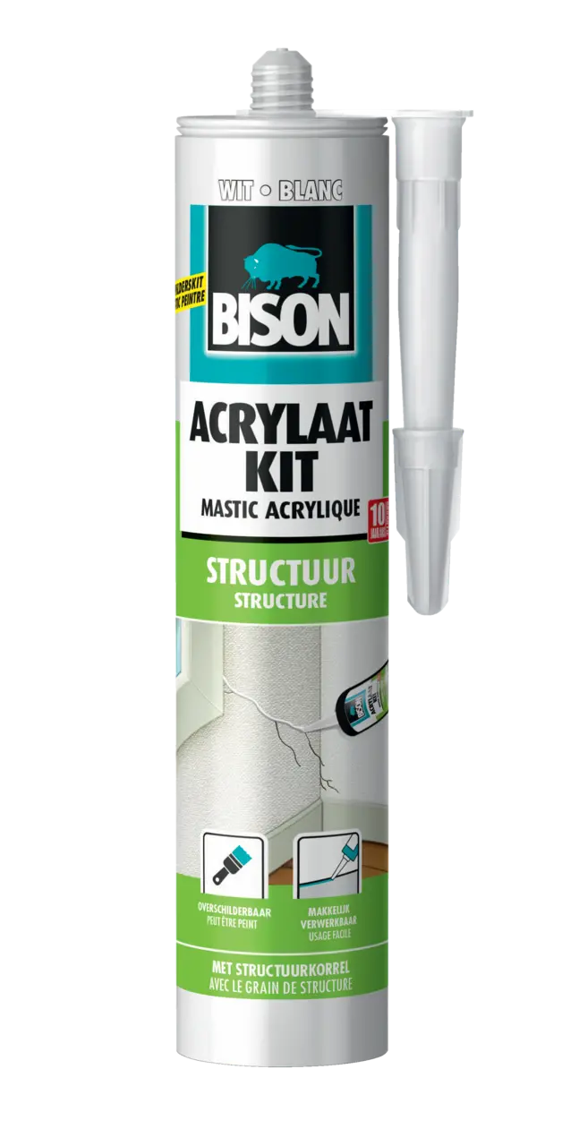 Geschikt voor het afdichten van weinig werkende voegen, naden en kieren bij deur- en raamkozijnen, vensterbanken, lambrisering, trappen, plinten, wanden, gipsplaten, plafonds en doorvoerleidingen. Ook geschikt voor het afdichten van scheuren en barsten in muren. Hecht op baksteen, (gas)beton, metselwerk, pleisterwerk, hout en de meeste overige poreuze ondergronden. Hecht niet op bitumen, PE, PP, P.T.F.E en siliconen. Voor afdichting bij beglazing BISON Beglazingskit gebruiken.