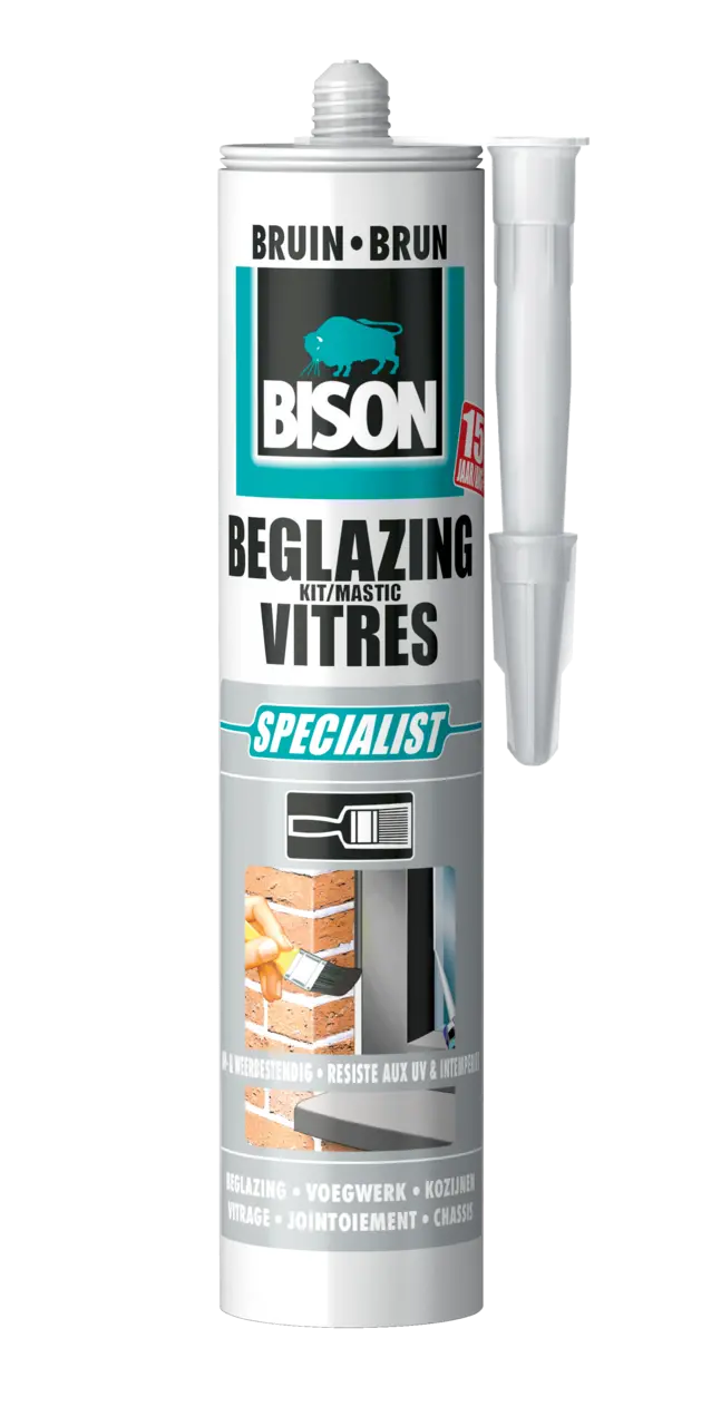 Hoogwaardige, overschilderbare, zeer snelle, waterbestendige afdichtingskit op speciale polymeerbasis voor voegen bij enkel- en dubbel glas. Binnen en buiten toepasbaar.