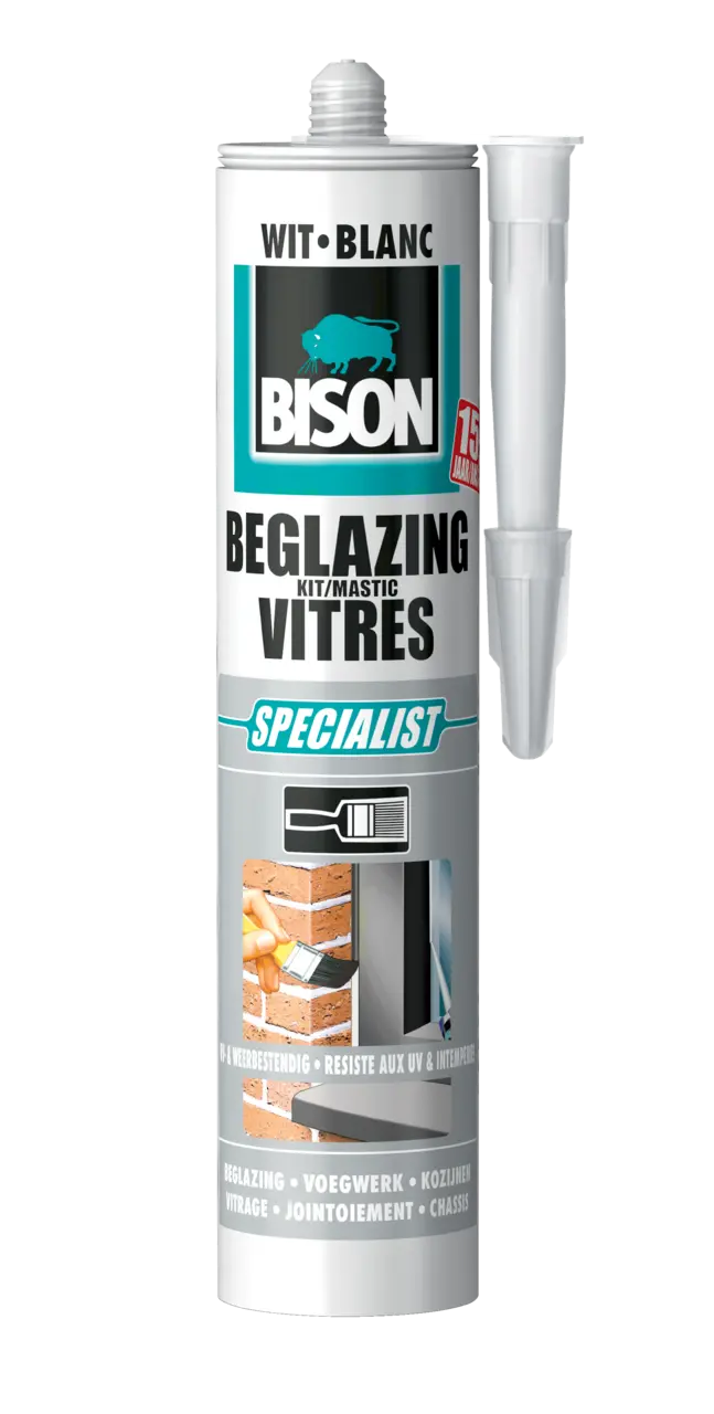 Hoogwaardige, overschilderbare, zeer snelle, waterbestendige afdichtingskit op speciale polymeerbasis voor voegen bij enkel- en dubbel glas. Binnen en buiten toepasbaar.
