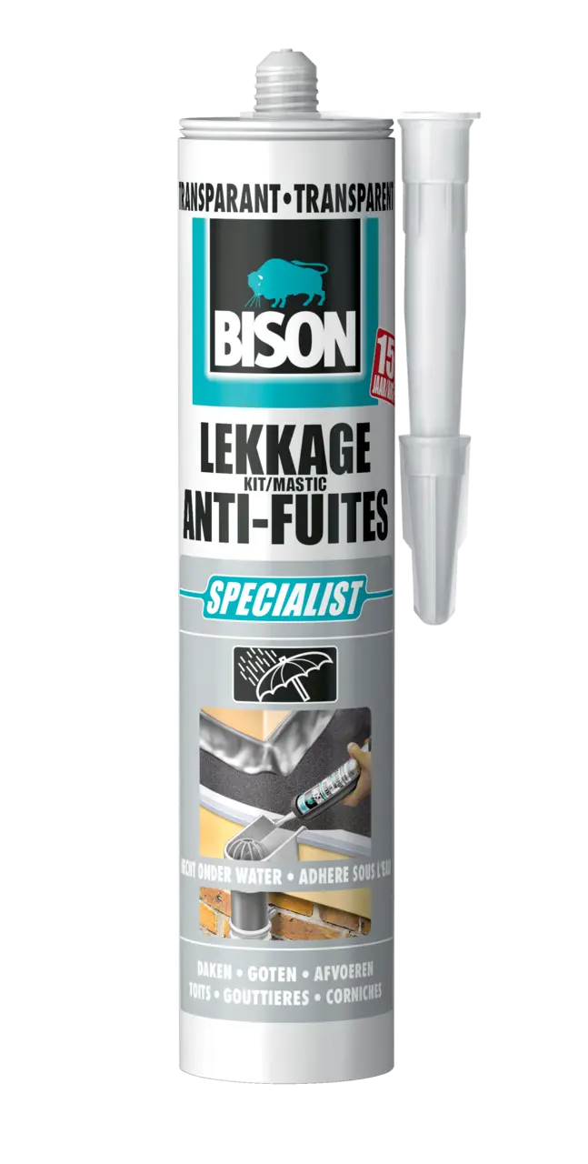 De kit is overschilderbaar na volledige droging met alle verfsoorten. Oplosmiddel bevattende verven kunnen door de kit vertraagd worden in de droogtijd (vooraf testen). BISON Lekkagekit blijft ook na opdroging plakkerig aan het oppervlak.