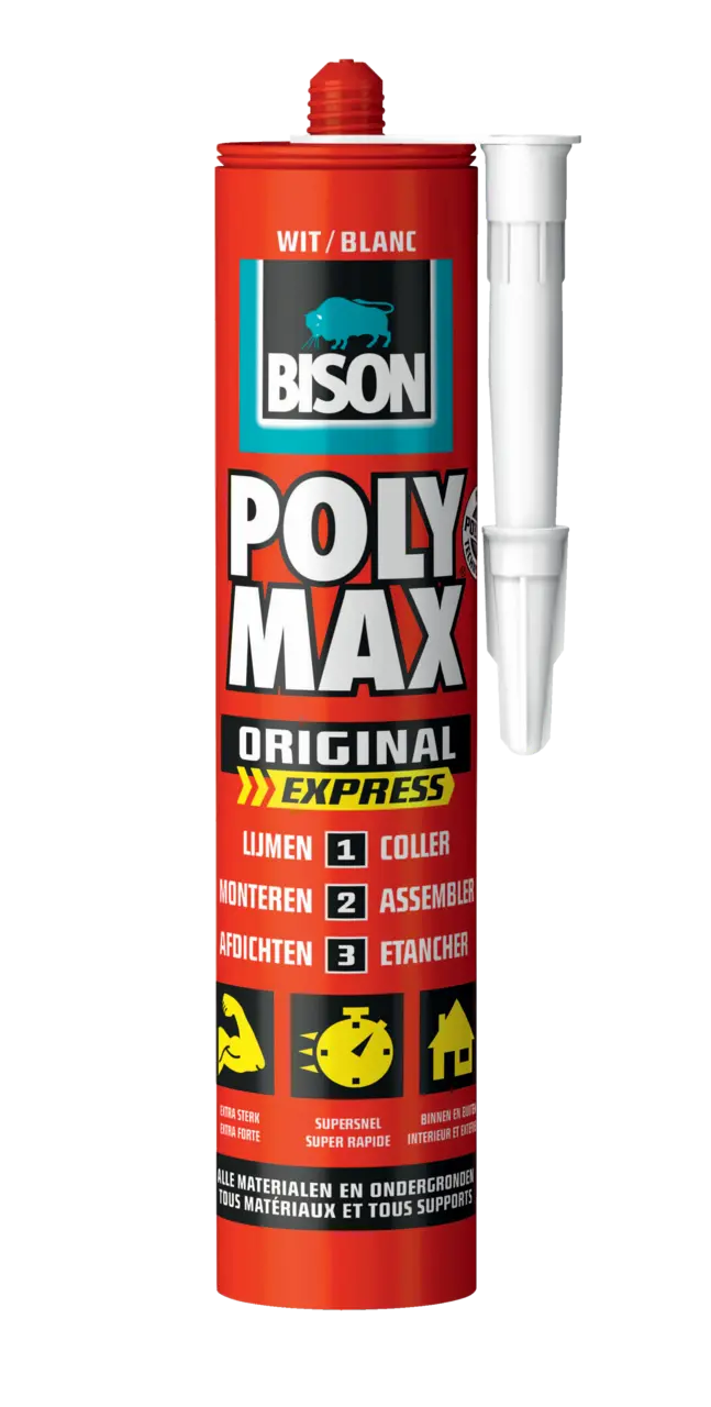 Lijmen en monteren: Kit aanbrengen in strepen of dotten (om de 10-40 cm) plus altijd op hoekpunten en langs de randen van plaatmateriaal. Materiaal binnen 10 minuten op de juiste plaats aanbrengen en stevig aandrukken of licht aankloppen met een rubber hamer. Zware materialen zonodig 4 uur klemmen of fixeren. Handvast na 2 uur, de verbinding is nu voldoende sterk voor vervoer of lichte belasting. Maximale eindsterkte na ca. 4 uur, afhankelijk van de ondergrond (minimaal 1 poreus materiaal) en de omgevingsomstandigheden. Afdichten: Kit gelijkmatig tot op de bodem van de voeg aanbrengen en binnen 10 minuten gladstrijken met een vochtig (zeepwater zonder citroen) plamuurmes, kitstrijker of vinger. Verticale voegen van onder naar boven gladstrijken. Volledige doorharding na enkele dagen (afhankelijk van laagdikte). Bij het overschilderen met alkydverf kan het zo zijn dat de verf langzamer droogt.