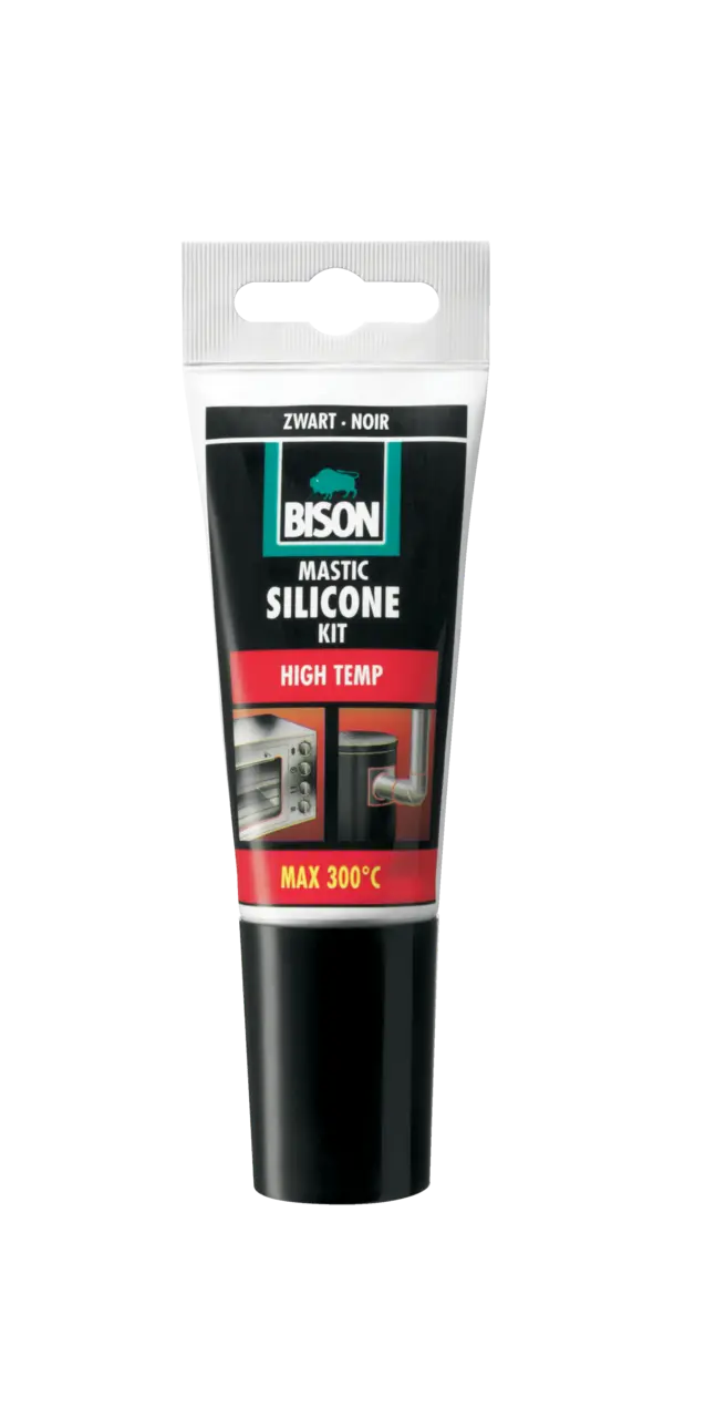 Kit gelijkmatig en langzaam in de voeg spuiten. Direct gladstrijken met BISON Multi Tool of vinger en zeepwater. Voor verlijming de te lijmen delen binnen 5 minuten samenvoegen. Na ca. 15 minuten vormt zich een oppervlaktehuid. BISON High Temp bereikt de hoge hittebestendigheid na volledige uitharding. De uitharding kan worden versneld door de kit op te warmen tot maximaal 150°C.