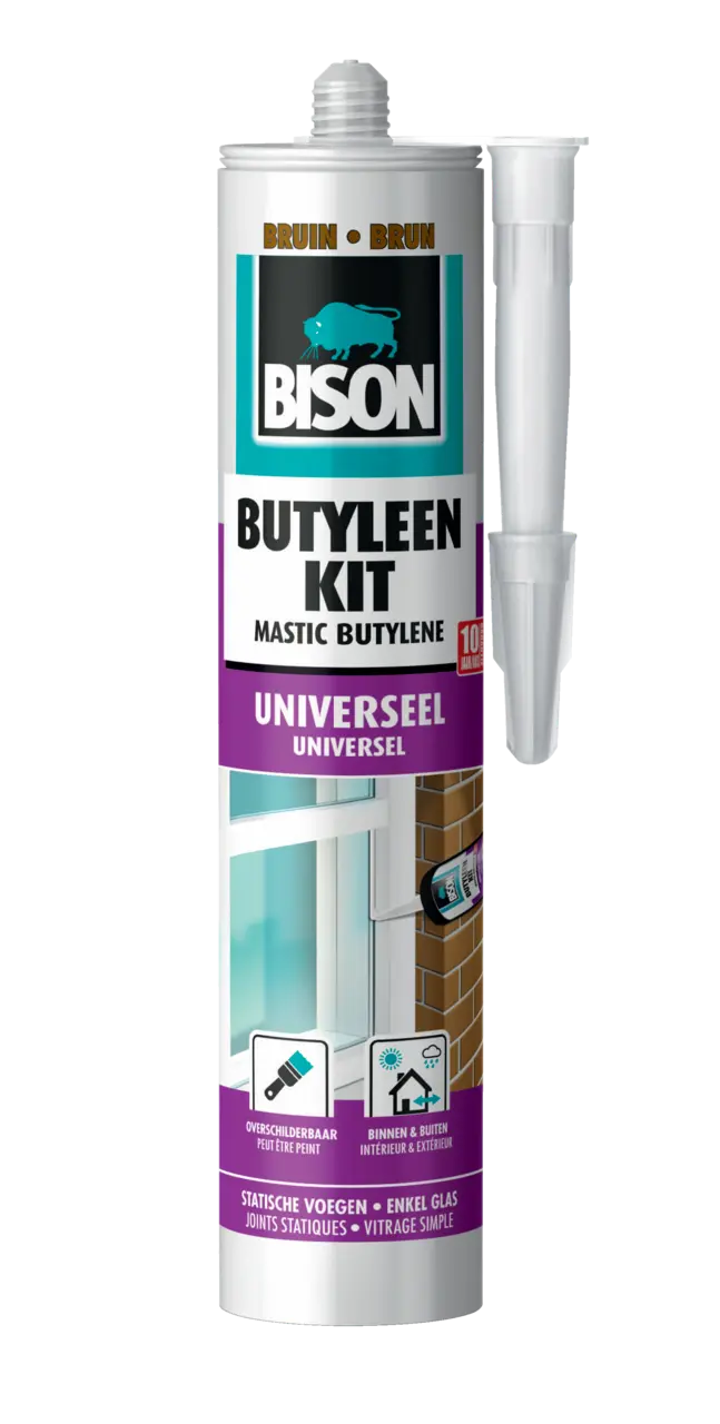 De kit is overschilderbaar en bestand tegen weersinvloeden na het vormen van een oppervlakte huid (ca. 24 uur). Butyleenkit vormt enkel aan het oppervlak een huidje die voldoende stvig is om te overschilderen. Voor buitenafdichtingen hoger dan de derde verdieping is deze kit niet aan te bevelen.
