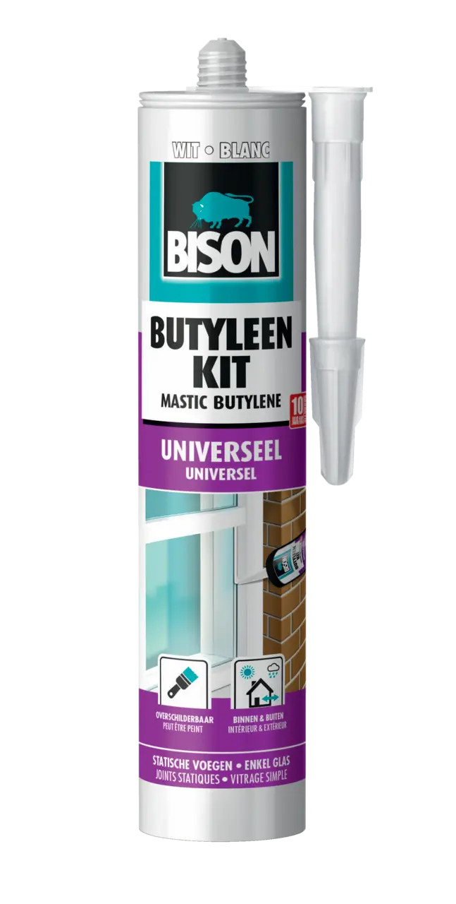 De kit is overschilderbaar en bestand tegen weersinvloeden na het vormen van een oppervlakte huid (ca. 24 uur). Butyleenkit vormt enkel aan het oppervlak een huidje die voldoende stvig is om te overschilderen. Voor buitenafdichtingen hoger dan de derde verdieping is deze kit niet aan te bevelen.