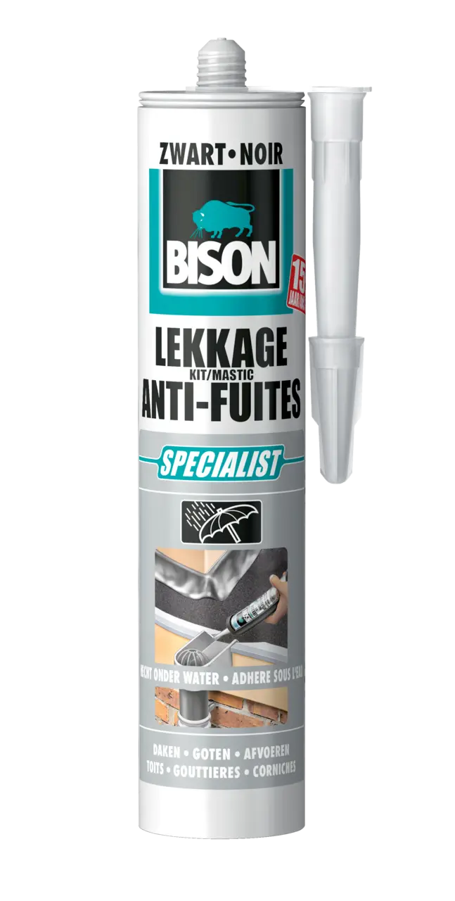 De kit is overschilderbaar na volledige droging met alle verfsoorten. Oplosmiddel bevattende verven kunnen door de kit vertraagd worden in de droogtijd (vooraf testen). BISON Lekkagekit blijft ook na opdroging plakkerig aan het oppervlak.