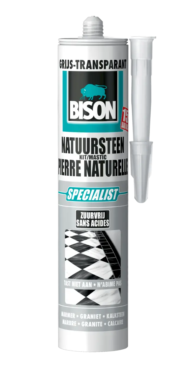 Natte vlekken direct met terpentine verwijderen. Uitgeharde kit is enkel mechanisch of met BISON Siliconenkitrestenverwijderaar te verwijderen.