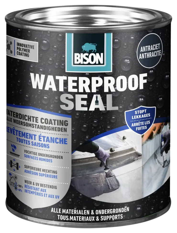 Waterproof Seal kan aangebracht worden op vochtige ondergronden, maar vermijd plassen water.