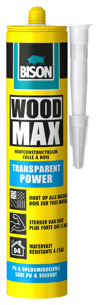 Extreem sterke, transparante, watervaste, PU-vrije en vullende houtconstructielijm op basis van SMP-Polymeer.