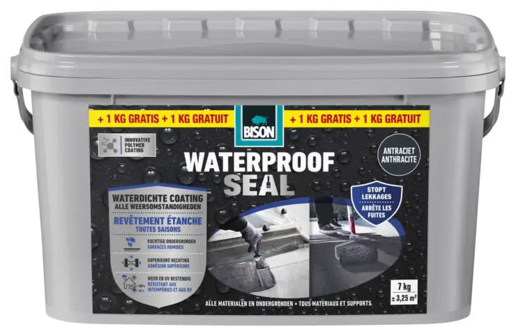 Waterproof Seal kan aangebracht worden op vochtige ondergronden, maar vermijd plassen water.